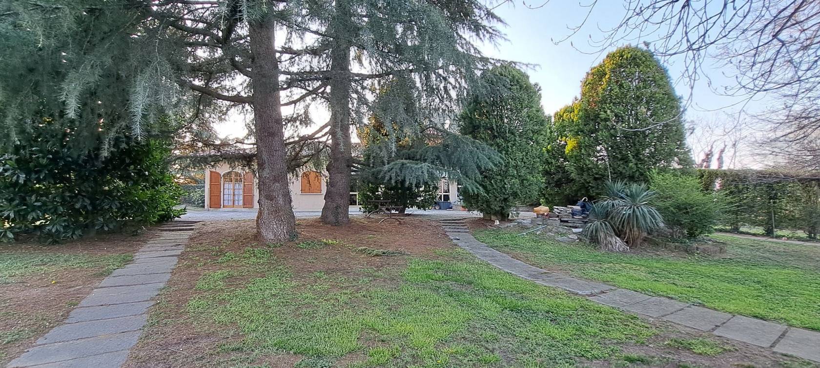 In frazione La Fratta, in quartiere di ville immerse nel verde, proponiamo villa indipendente con parco di oltre 3000 mq. L'unità immobiliare è in ottimo stato e si sviluppa preponderantemente al piano terra dove, attraverso un ampio porticato, si entra in un soggiorno molto luminoso di oltre 60 mq collegato da una parte alla cucina con ripostiglio e bagno, dall'altra alla zona notte composta da quattro camere ed un bagno. Dal soggiorno si accede mediante scala interna al primo piano dove si trova un sottotetto ed una soffitta di circa 120 mq, ed al piano interrato dove c'è una taverna di 130mq con camino, una cantina e due garage. Il lotto si presta a numerose riorganizzazioni degli spazi e consente inoltre una volumetria residuale per la realizzazione di un ampiamento dell'edificio esistente o di una nuova costruzione.
